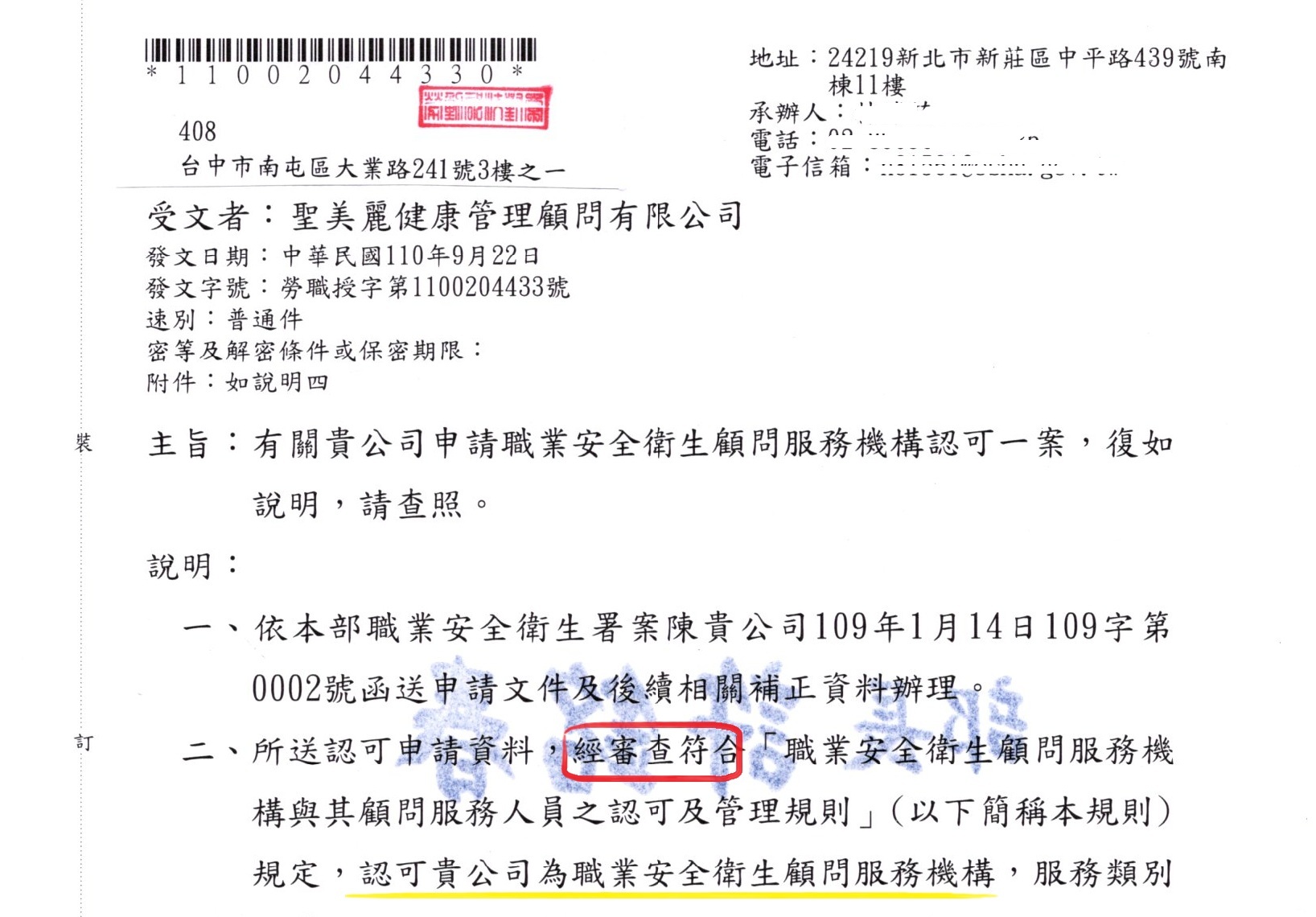★110年09月22日通過職安署認可『勞工健康顧問服務』之顧問機構(彰化第一家通過認可!)